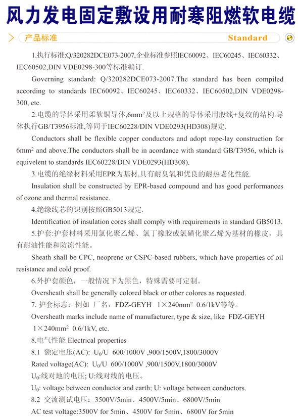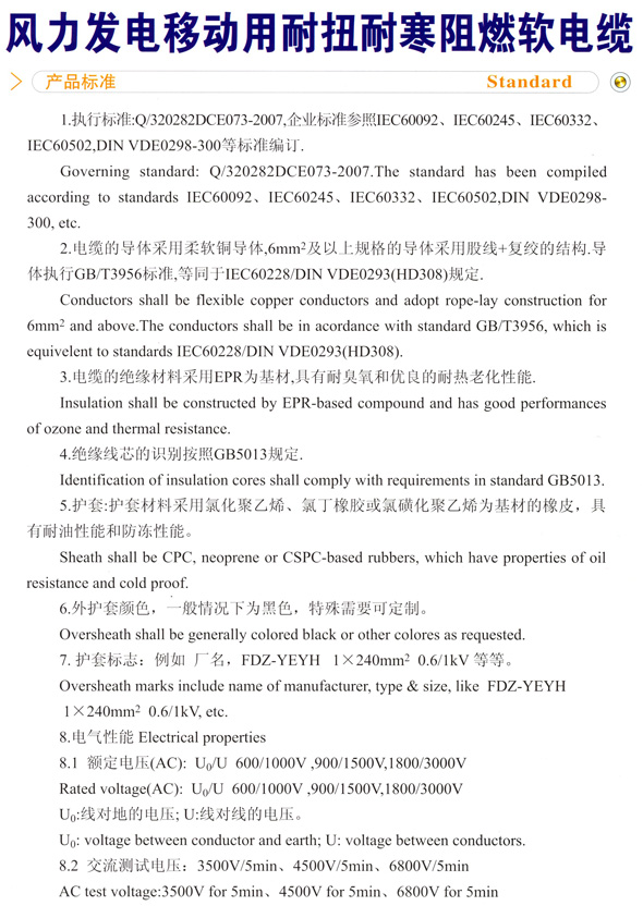 風(fēng)力發(fā)電移動用耐扭耐寒阻燃軟電纜